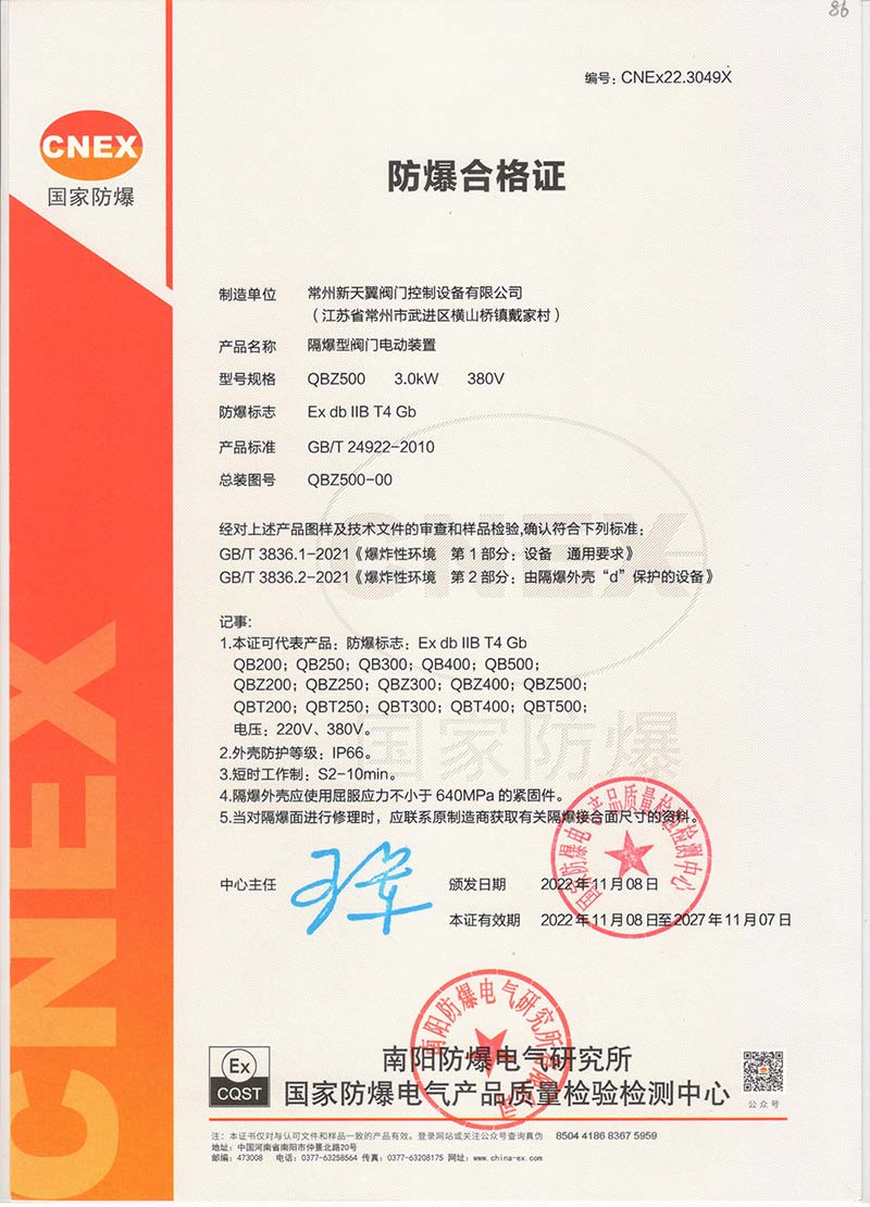 隔爆型QB QBZ QBT 220380中國國家強制性產品認證證書107.2